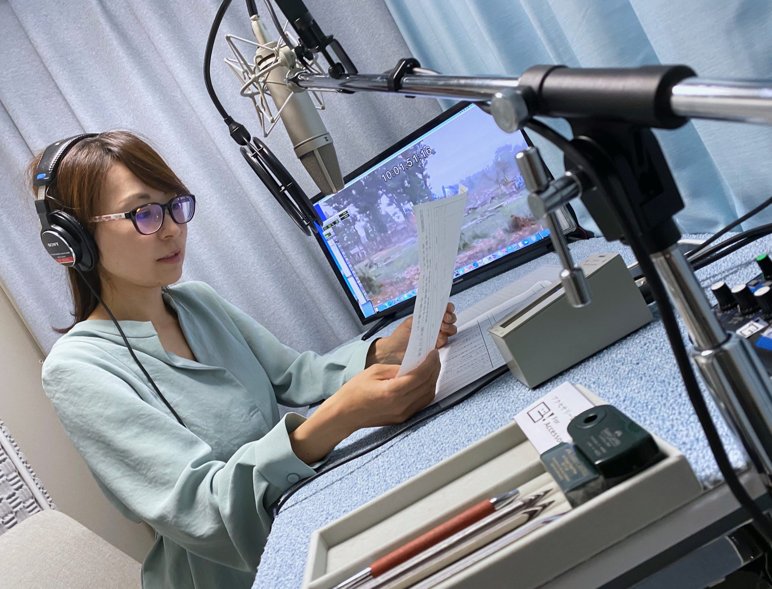 スムーズに録音できるよう、原稿の用語や読むタイミングなど入念にチェック。