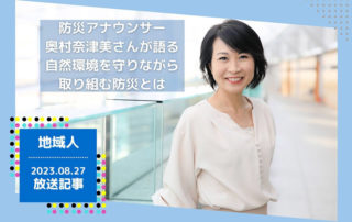 2023年8月27日放送に全国のコミュニティFM(一部地域を除く)で放送された防災への取り組みが、地域の大好き、発見メディア。ロコラバのWebサイトに掲載されました。 防災アナウンサー奥村奈津美さんが語る、自然環境を守りながら取り組む防災とは https://musicbird.jp/cfm/biz/loco-lovers/natsumiokumura/ [...]