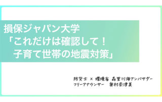 損保ジャパン大学で地震対策講座を担当しました。 タイトルは「これだけは確認して!子育て世帯の地震対策」。 ・地震対策で最も大切なこと・お家の中を安全な空間にする方法・おうち避難訓練をやってみよう・必ず子どもに伝えておきたいこと持たせておきたいもの・SOSカードの作り方など [...]
