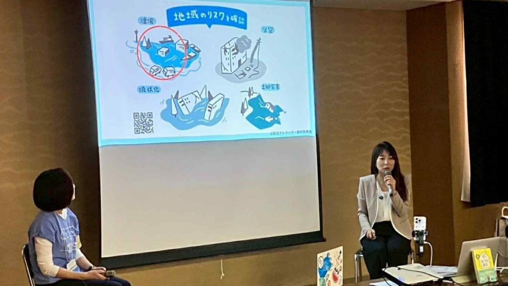 主催のミンナソラノシタ代表、林さんとトークショー形式で地区防災計画の必要性についてお話しました。
